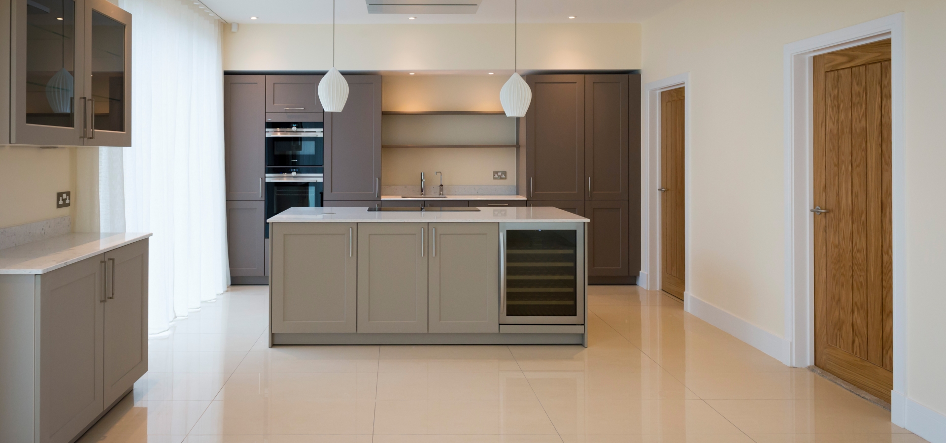 A full height glazed entrance hall features a galleried landing and oak cantilever staircase with glazed balustrade and flows through to an open plan kitchen, dining area and family room. The kitchen is by leading German designers, SieMatic and includes a range of high performance integrated appliances by Siemens.